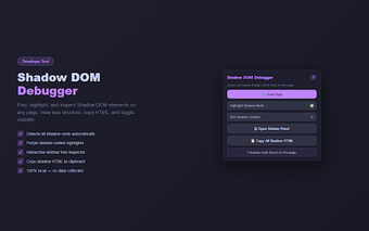 Shadow DOM Debugger เป็นส่วนขยาย Chrome ฟรีที่ออกแบบมาเพื่อเพิ่มความสามารถในการมองเห็นและตรวจสอบองค์ประกอบ Shadow DOM บนหน้าเว็บใด ๆ เครื่องมือนี้ช่วยให้ผู้ใช้สามารถค้นหา ไฮไลต์ และโต้ตอบกับส่วนประกอบที่ซ่อนอยู่ซึ่งโดยปกติจะไม่สามารถมองเห็นได้ผ่าน DevTools มาตรฐาน ด้วยฟีเจอร์เช่นการตรวจจับรากเงาแบบไดนามิกและตัวตรวจสอบแถบด้านข้างที่ใช้งานง่าย นักพัฒนาสามารถนำทางผ่านโครงสร้าง Shadow DOM ที่ซ้อนกันได้อย่างง่ายดาย